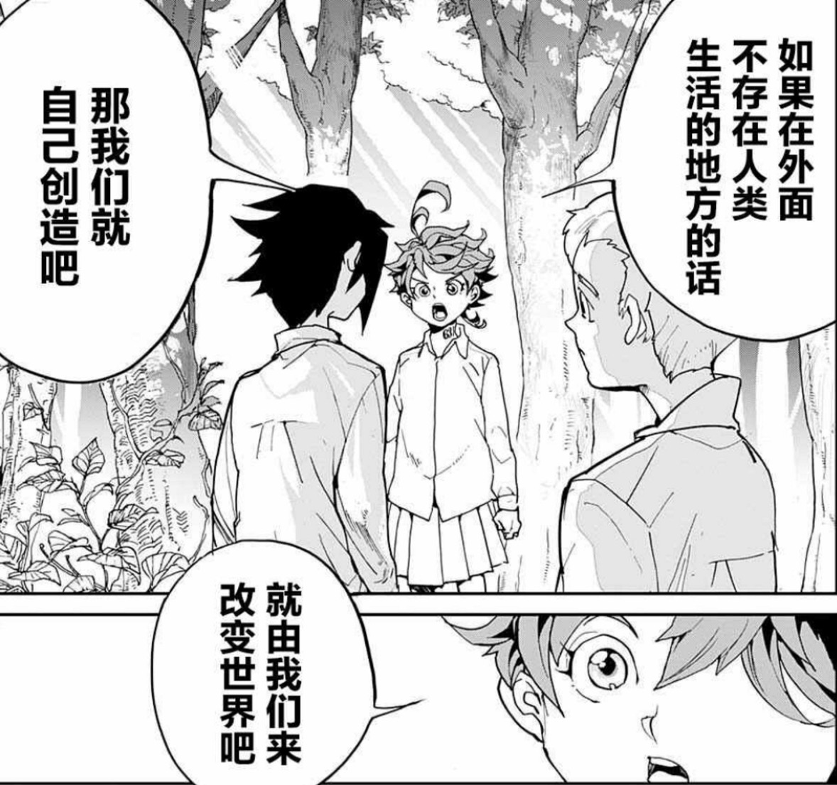 随着剧情推进,无数的难题层出不穷,每一次的困难好像都在逼迫大家做取舍,做妥协,”也许让步一点点也可以“,”也许根本就没有完美结局,能做到这一步已经是最好的结果了“,每个人都会这样想,在让步和放手中维持一个还算说得过去的人生。但艾玛没有,她的想法早在一开始就说过了,不管是什么绝境,面对什么人,还需要重复多少遍,她从始至终的目标从未改变,那就是所有人活下去并获得自由,“要解放所有食用儿童”